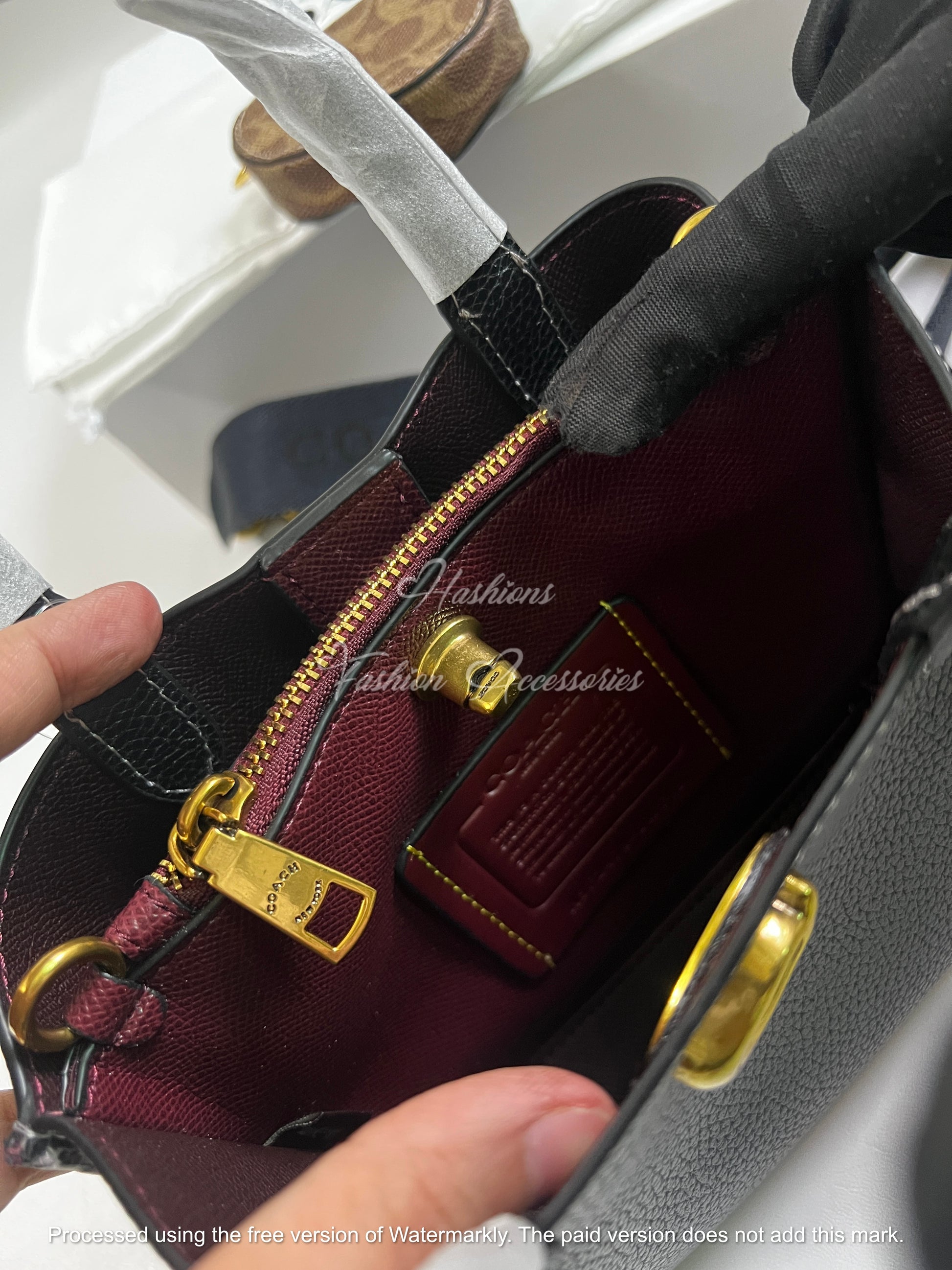 Pebble-texture vegan leather; fabric lining