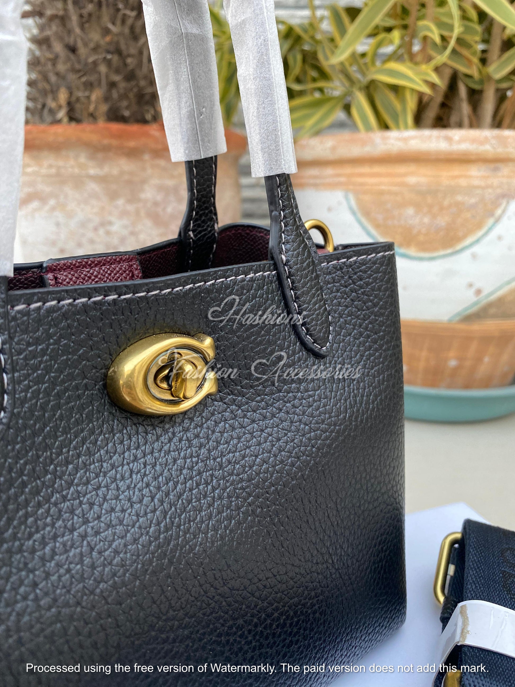 A compact everyday bag with polished details. This mini satchel is crafted from pebble-texture vegan leather and finished with a classic turn-lock closure. Carry it by the sturdy top handles or clip on the wide crossbody strap for hands-free wear. Protective metal feet keep the base clean while the structured shape holds your essentials without bulk. Inside, a secure zip pocket and slip pocket keep cards and keys easy to reach—perfect from errands to evenings out.