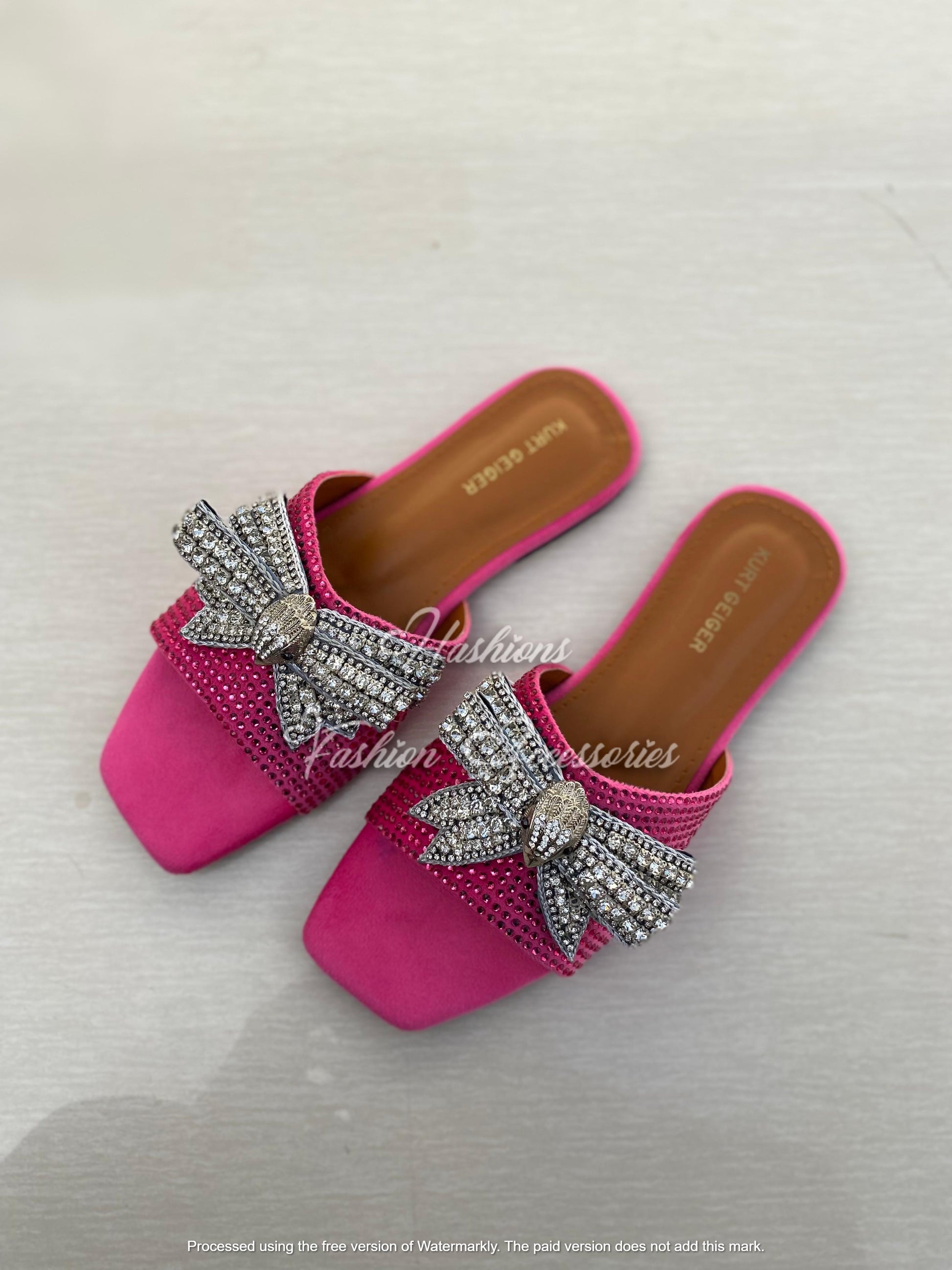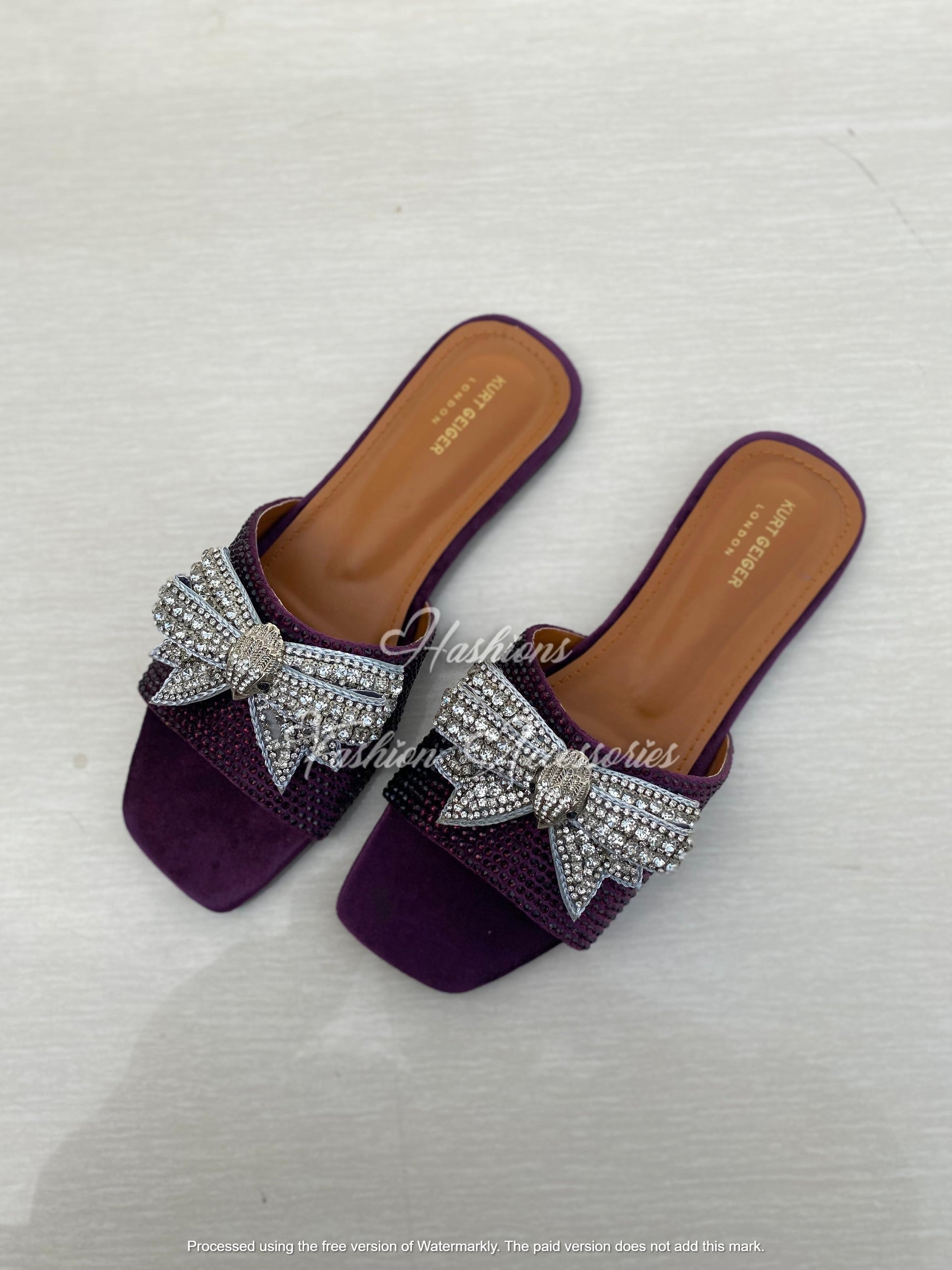Make a dazzling entrance in these elegant jeweled bow slide sandals. The rich black velvet (or suede-like) material provides a luxurious feel, beautifully complemented by the oversized rhinestone-encrusted bow that catches the light with every step. These women's square toe flats are the ultimate choice for special events, evening parties, weddings, or any occasion that calls for a touch of glamour. The easy slip-on design and cushioned footbed ensure all-night comfort without sacrificing style. A statement piece available in Black, Hot Pink, Royal Purple, and a dazzling Gold Glitter finish.