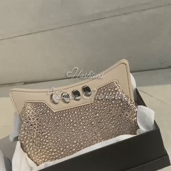 Shine like never before with this luxury-inspired crystal studded evening bag — a dazzling statement piece for night-outs, weddings, and red-carpet moments.