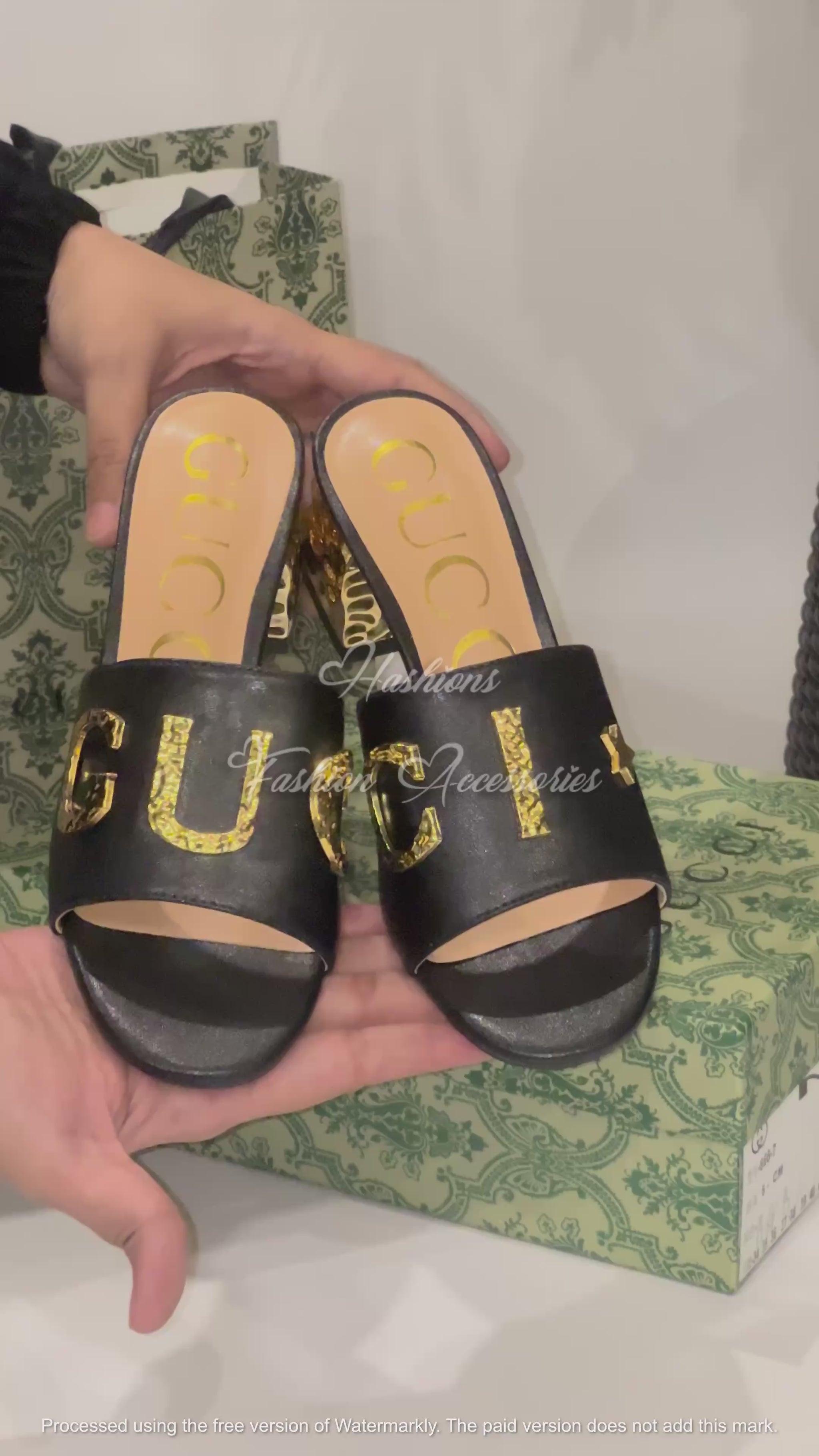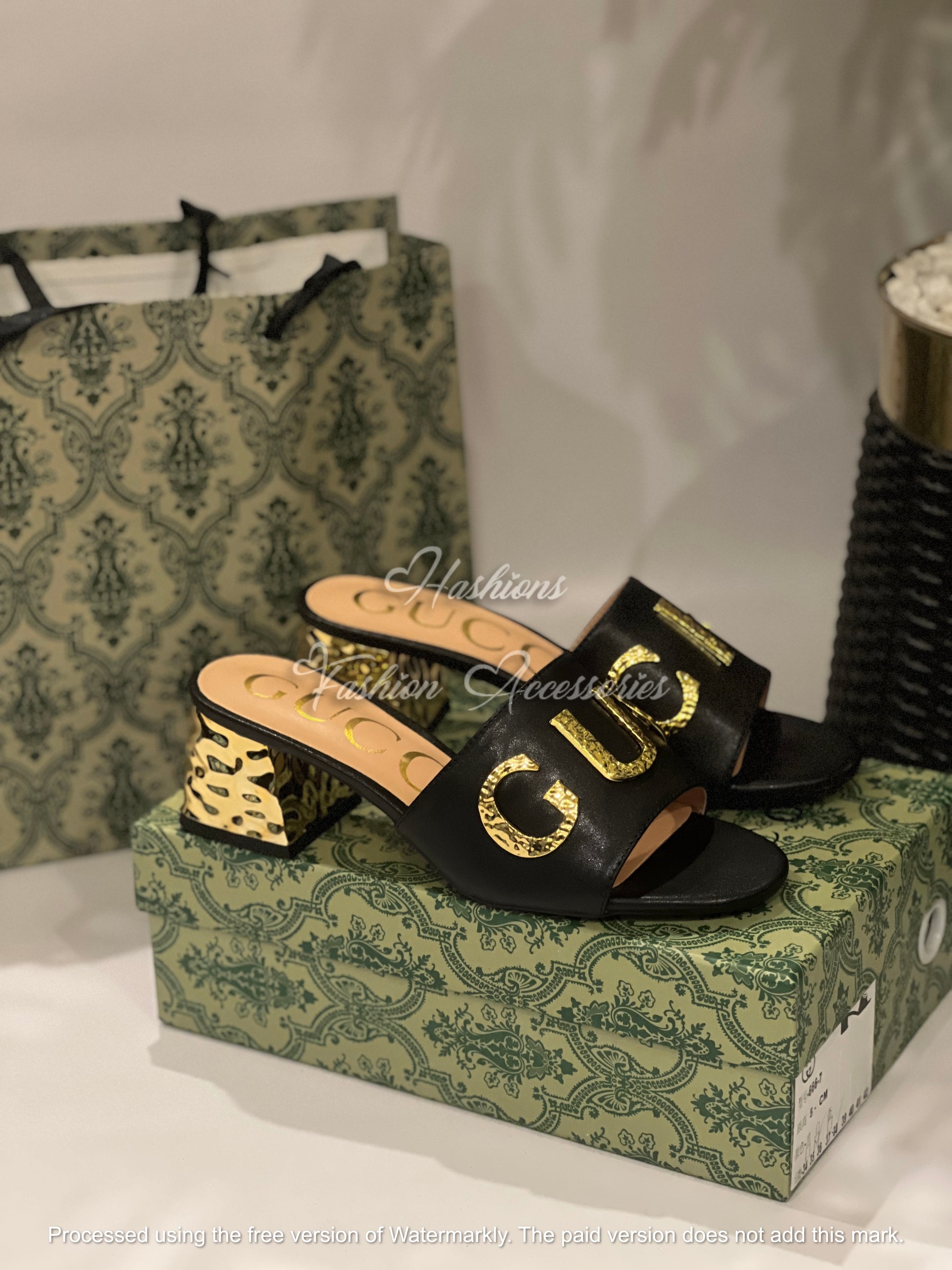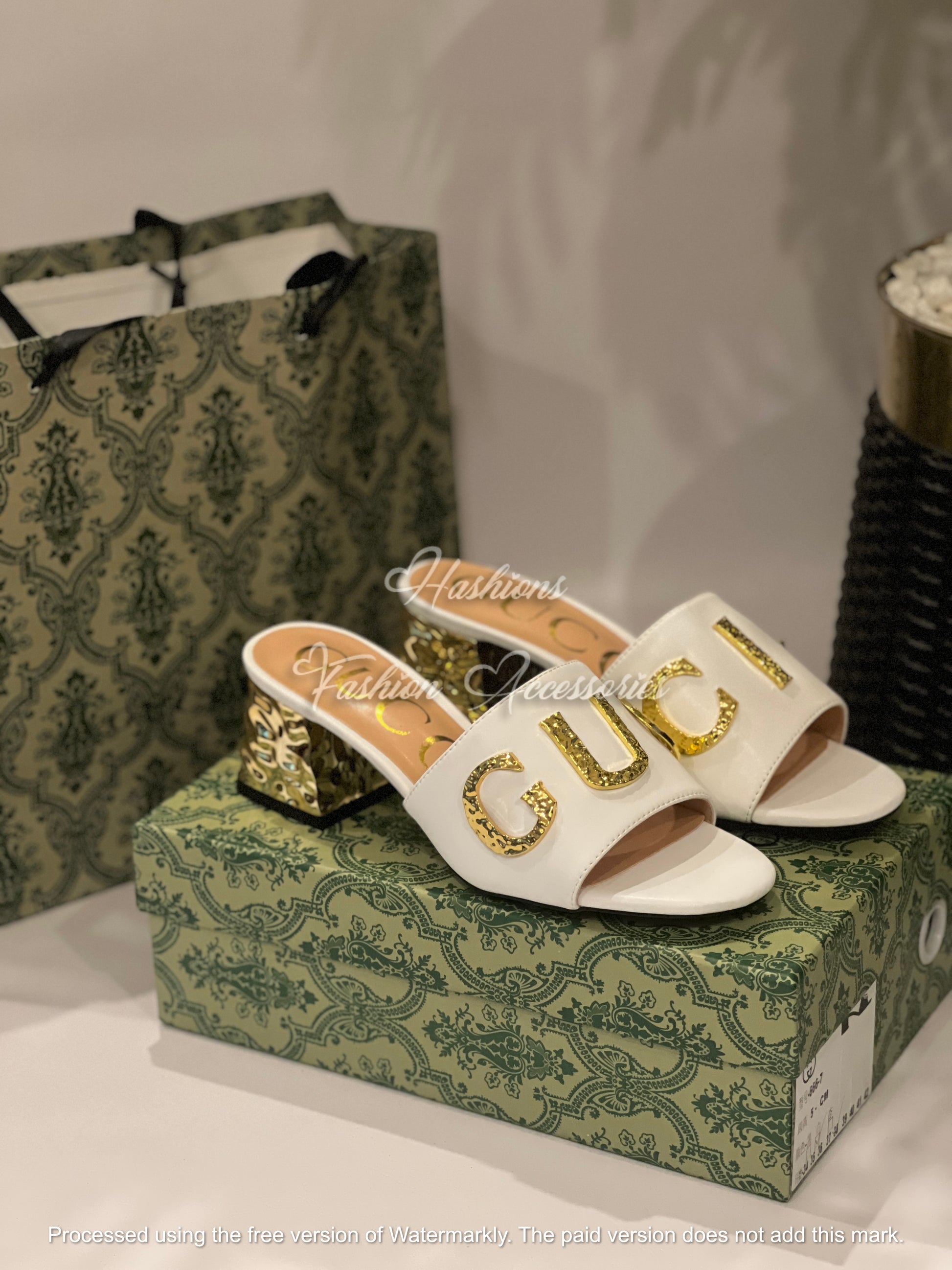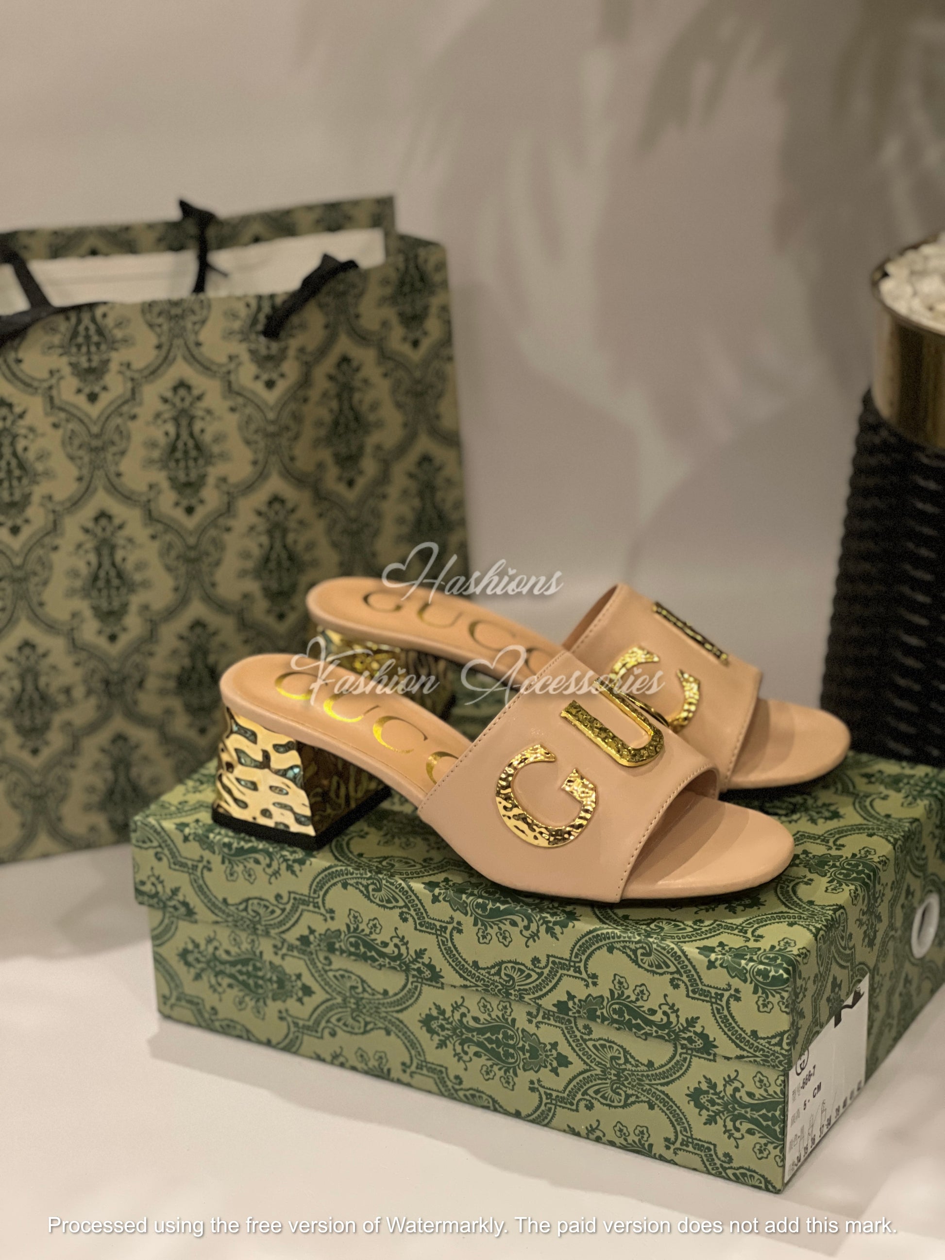 Gold Accent Block Heels – Women’s Luxury Statement Slides (Black, White & Nude)
