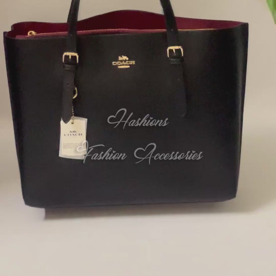 A sleek, everyday large black tote bag designed for work, uni, travel and errands. The structured silhouette, roomy interior and secure zip-top closure keep your essentials organized and protected. Soft pebbled finish, adjustable shoulder straps and a striking red lining add polish to any outfit.
