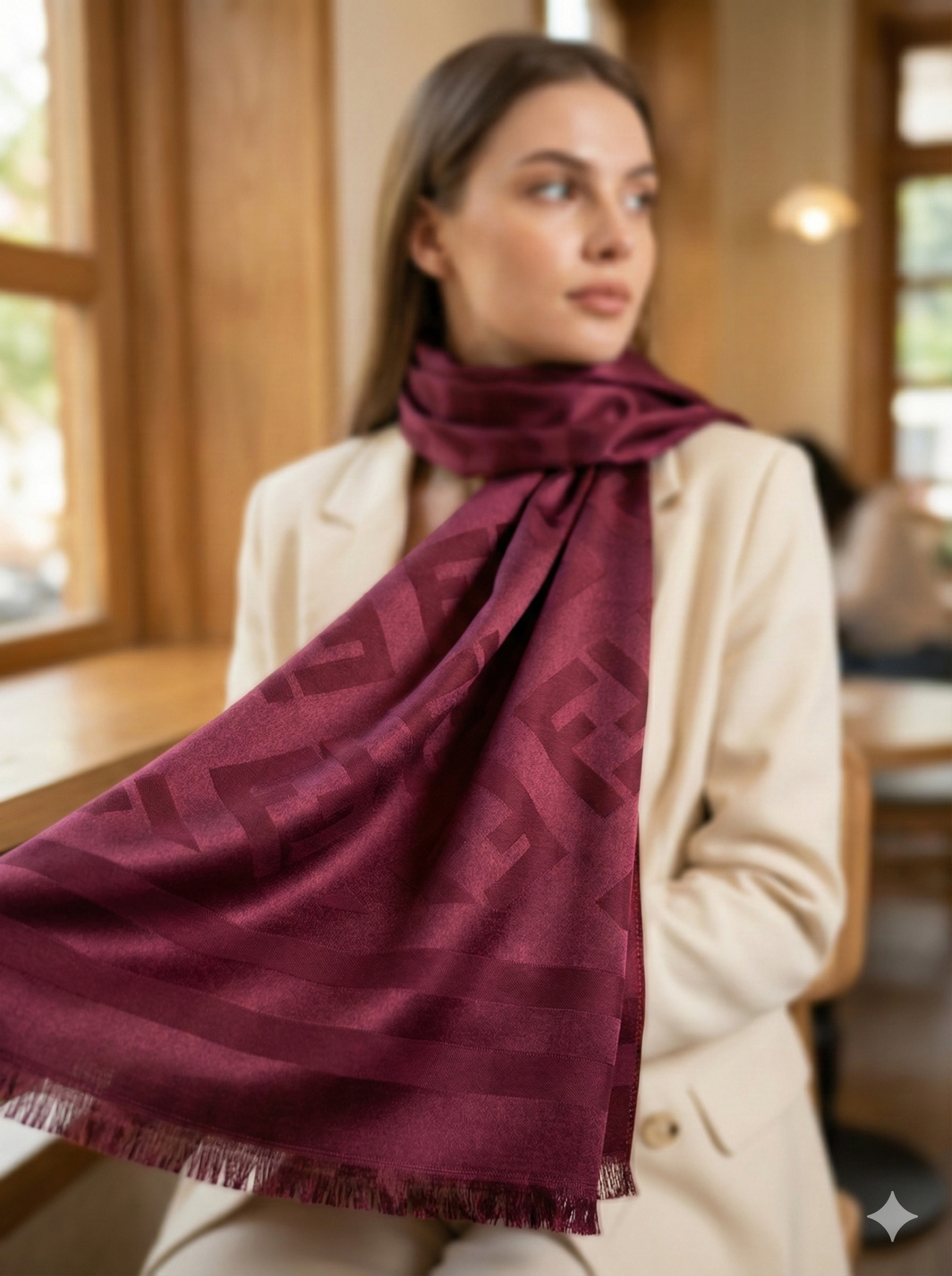 Add a refined statement to your wardrobe with this luxury monogram-style silk scarf for women, crafted from smooth, lightweight silk with a soft sheen. Designed with a classic geometric pattern and elegant borders, this scarf delivers a polished, high-end look while remaining versatile enough for everyday styling.