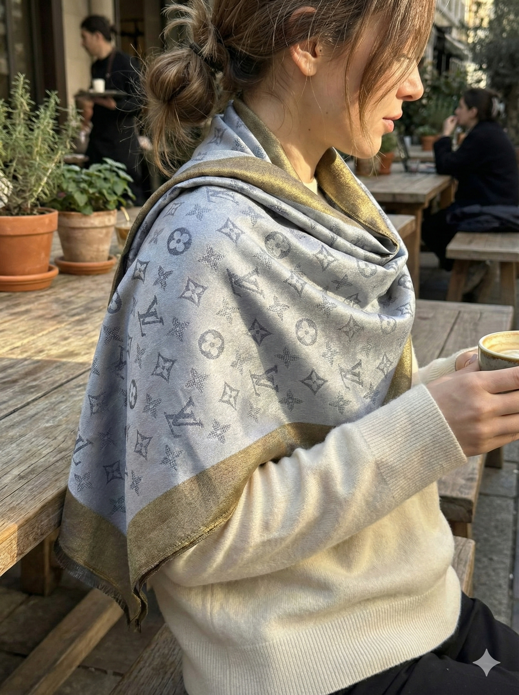 Elevate your everyday and formal looks with this luxury silk blend scarf for women, designed for those who appreciate elegance without excess. Crafted from a smooth, lightweight silk blend, this scarf features a refined all-over monogram-inspired pattern paired with a subtle contrast border, giving it a timeless and premium appeal.