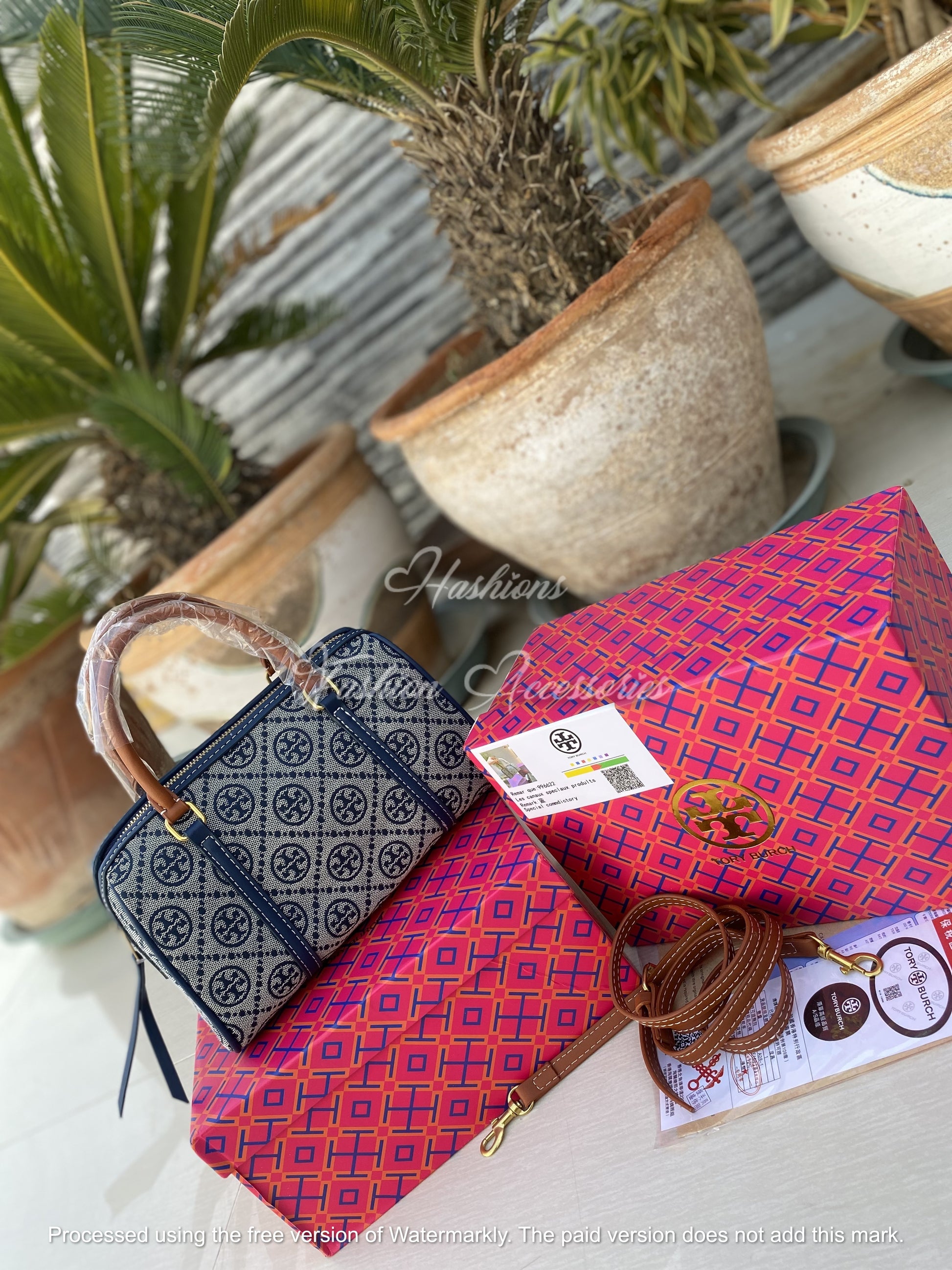 Meet your new every-day statement bag. This mini boston barrel silhouette pairs a structured top handle with a detachable crossbody strap for hands-free ease. Crafted in premium monogram jacquard and smooth vegan leather trim (Black option in full vegan leather), it features a secure zip closure, protective metal feet, and a roomy interior that fits your phone, small wallet, keys, lipsticks and more.
