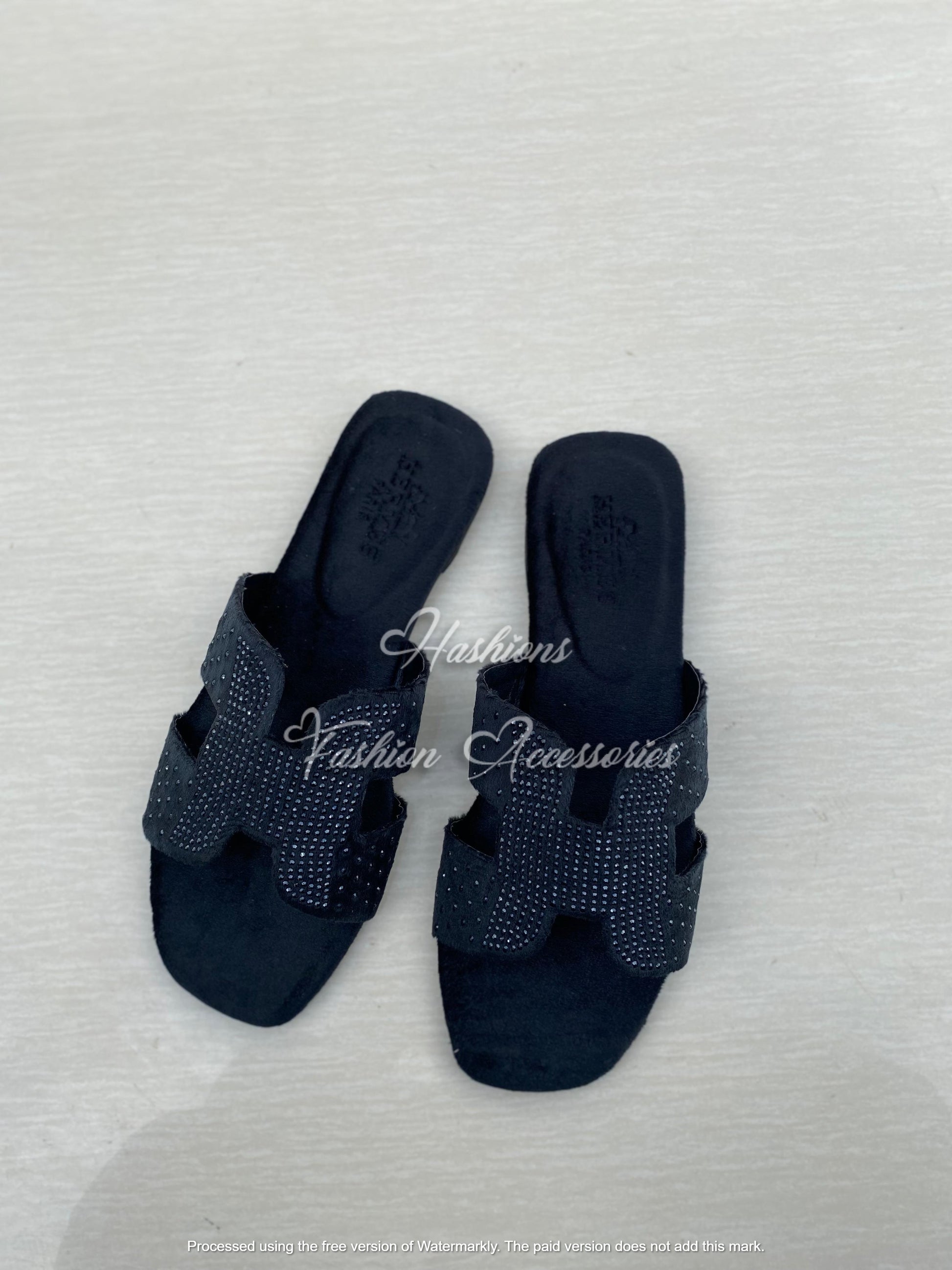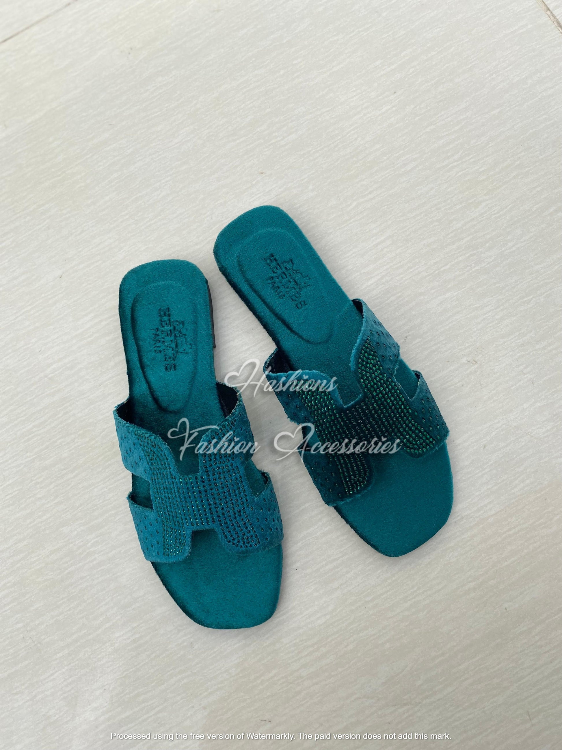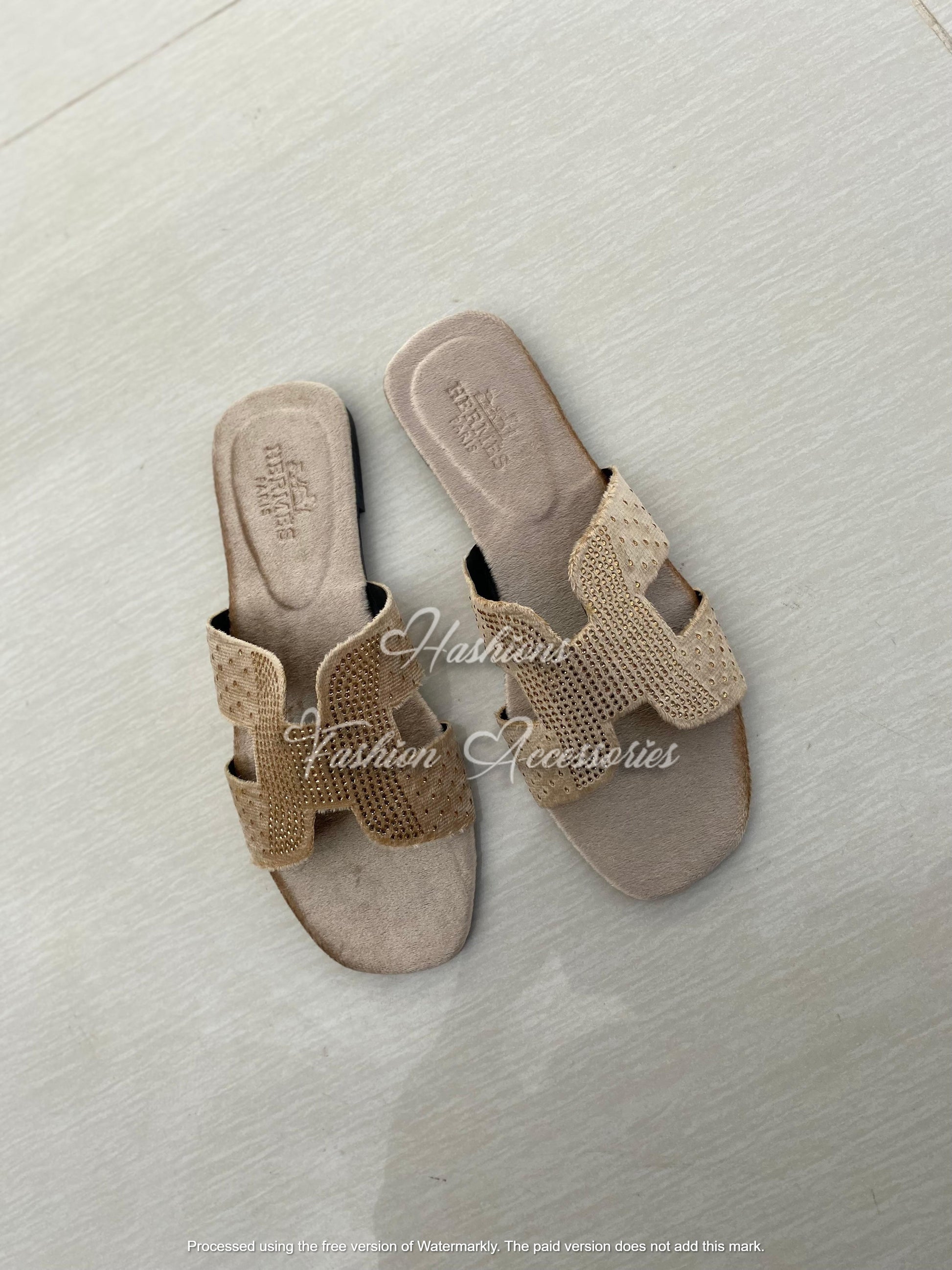 Experience luxurious comfort with these stylish women's studded H-strap slides. Crafted from a soft, suede-like material, the iconic H-style strap is subtly embellished with tiny micro-studs or rhinestones, adding a delicate shimmer. The neutral nude (or beige) tone is highly versatile, creating a flattering, leg-lengthening effect. These comfortable slip-on flats are perfect for all-day wear, adding a touch of elegance to casual summer outfits, or packing for your next vacation. Also available in vibrant colors like Hot Pink, Teal, and Royal Purple.