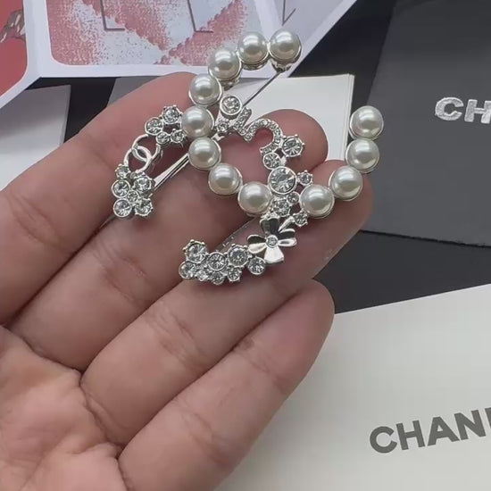 Add timeless sophistication to your look with this pearl and crystal interlocking C-shape brooch, designed for women who love classic elegance with a modern luxury feel. Featuring lustrous pearl beads, shimmering crystal accents, and a sleek silver-tone finish, this brooch delivers a refined, high-end aesthetic without any branding.
