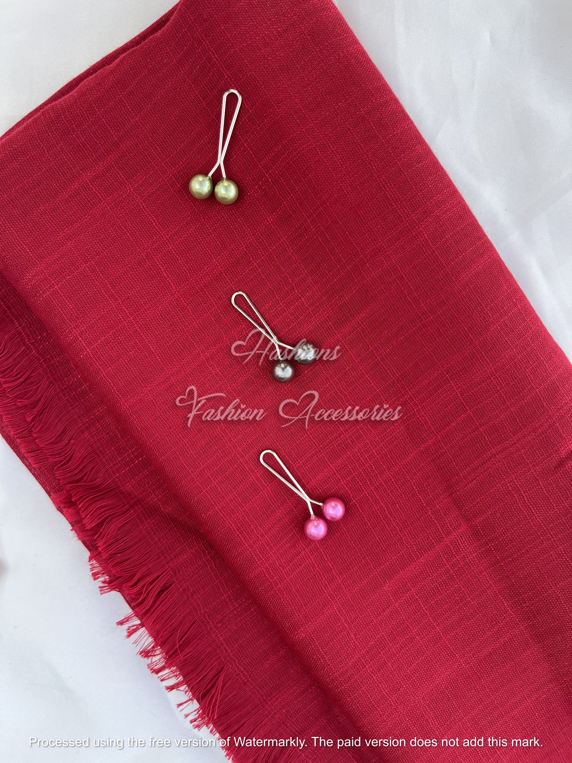 Each stole is beautifully finished with soft fringed edges for a modern touch and includes a matching pearl pin set — perfect for hijabis and women who love refined details.