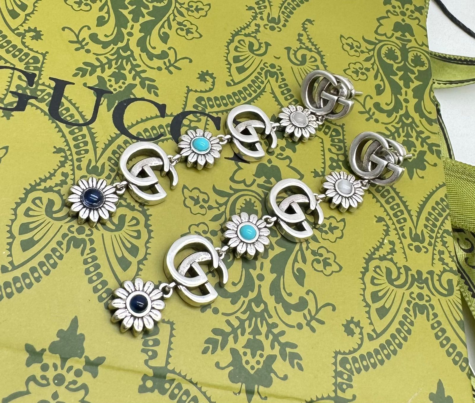 Vintage Silver Floral Charm Earrings with Turquoise and Blue Stone Accents